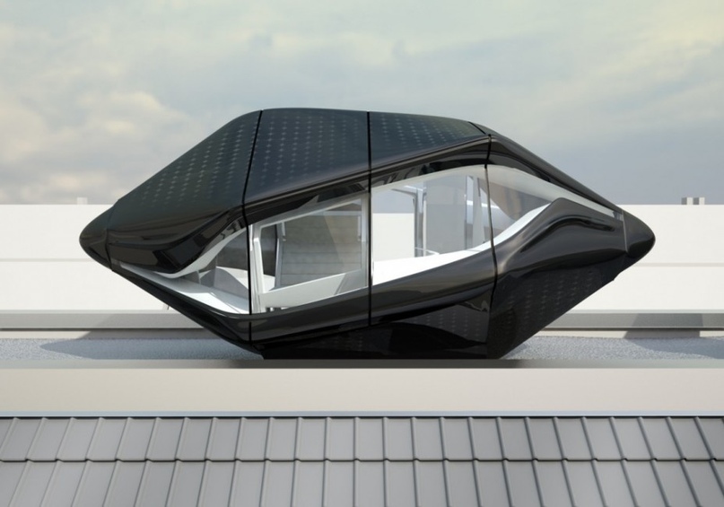 В Швейцарии придумали похожее экономичное пространство для жизни, правда своеобразные комнаты – капсулы Living Roof предназначены для размещения на крышах больших жилых домов. Такая капсула оборудована солнечными батареями, системой сбора, очистки и сохранения обычной дождевой воды, а также – ветряными генераторами.