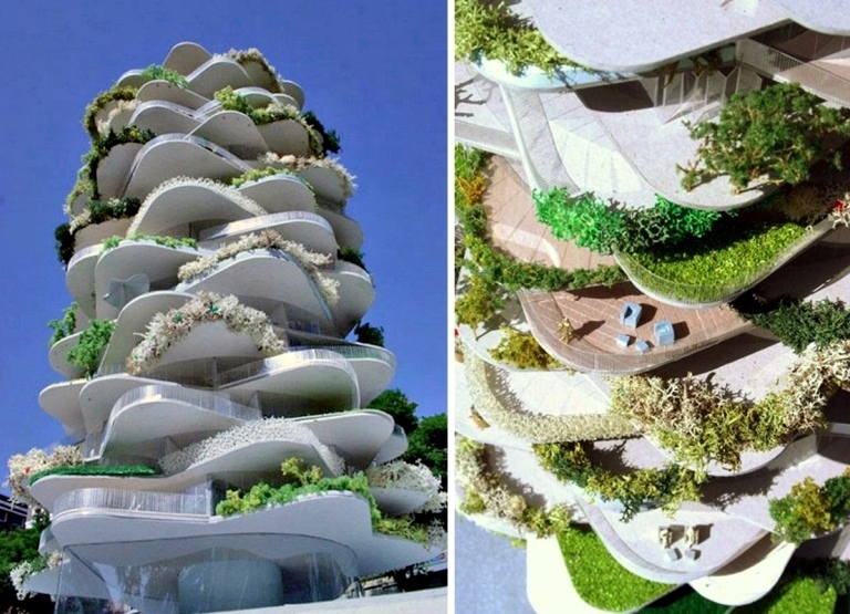 В итальянском Милане изобрели технологию, позволившую воссоздать легендарные висячие сады Семерамиды. Ботаники отобрали породы деревьев, кустарников и различных трав, способные комфортно себя чувствовать на высоте, в малом количестве грунта, и посадили настоящий вертикальный лес. То есть, высадили растения на балконах жилых квартир, превратив, таким образом, стены дома в почти сплошной зеленый покров. Общее количество растений, высаженных на террасах высотки, соответствует примерно 10 километрам обычного «горизонтального» леса.